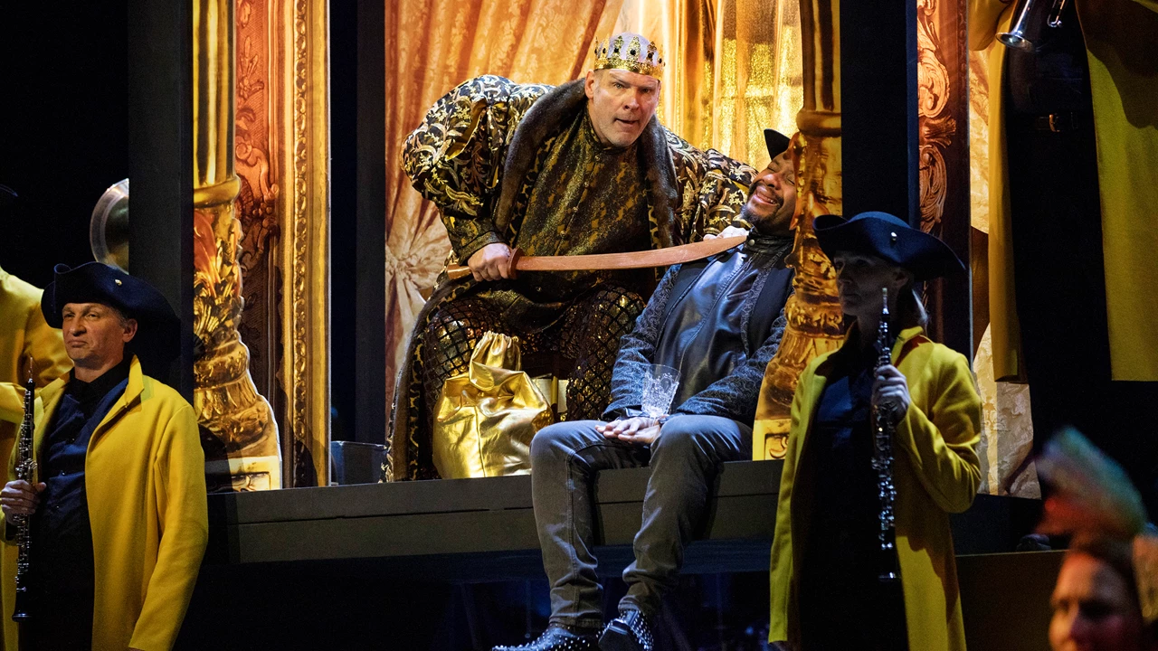 “Het maar liefst 29-koppige orkest voorziet het stuk niet alleen van een avontuurlijke score, het is ook nog eens onlosmakelijk onderdeel van de scenografie, de setting en het toneel. Af en toe zijn de muzikanten ‘slechts’ muzikanten, maar veel vaker zijn ze een kudde herten, de lakeien van de koning of de monniken in het bos.”