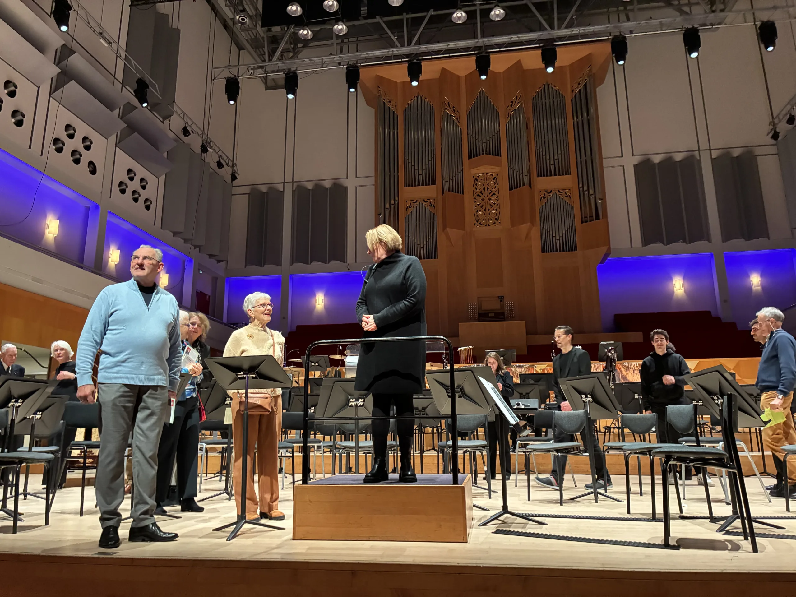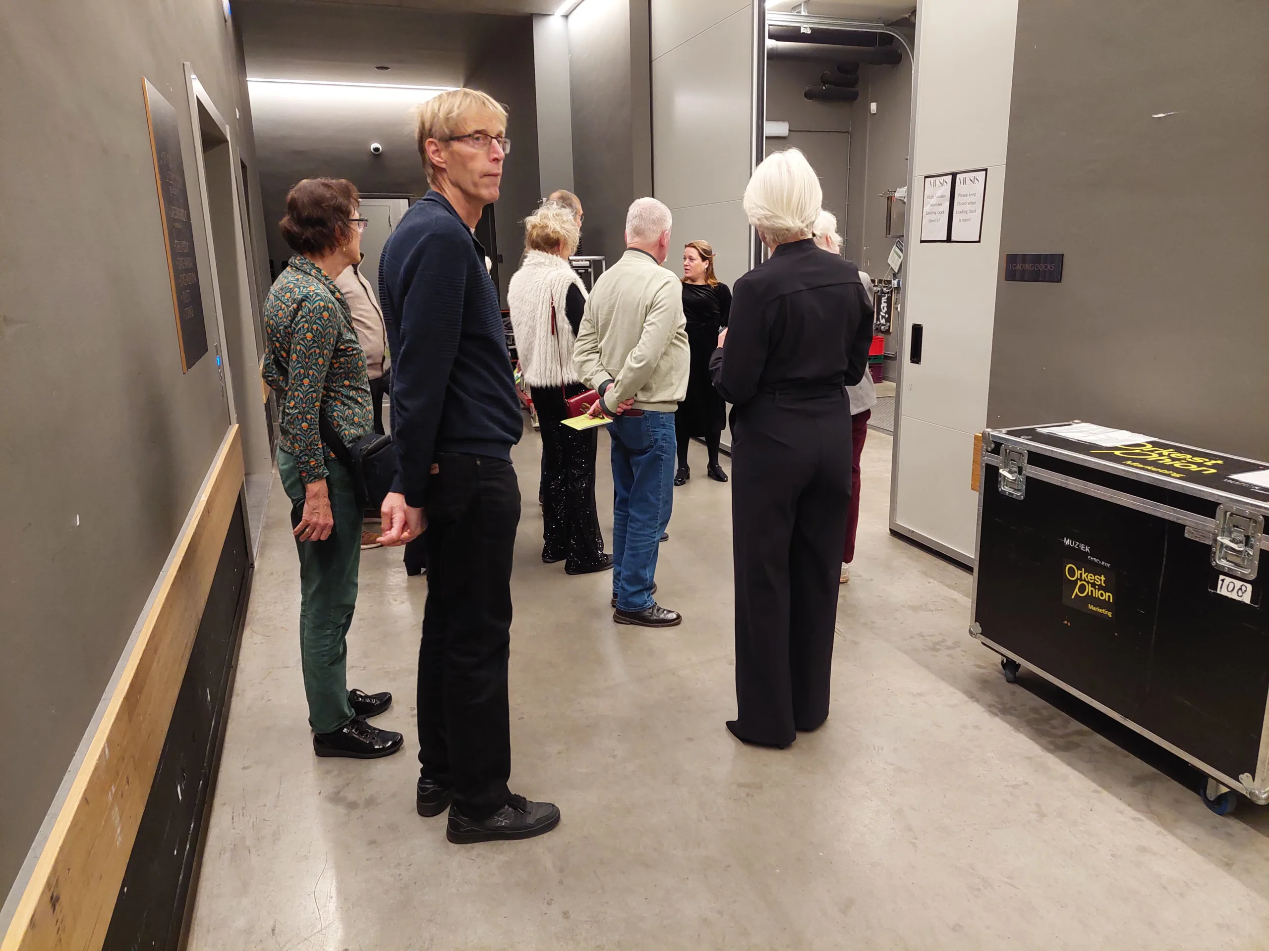 We kijken met veel plezier terug op de Kerstactie van het orkest. Zowel in Enschede als in Arnhem waren er een aantal Vrienden die samen met Eva Bengtsson en Pieternel van Lent backstage gingen kijken. Een bezoek aan het lege podium in de nog lege concertzaal was natuurlijk onderdeel van deze rondleiding. Sommige Vrienden kon de verleiding niet weerstaan en klommen ‘op de bok’.