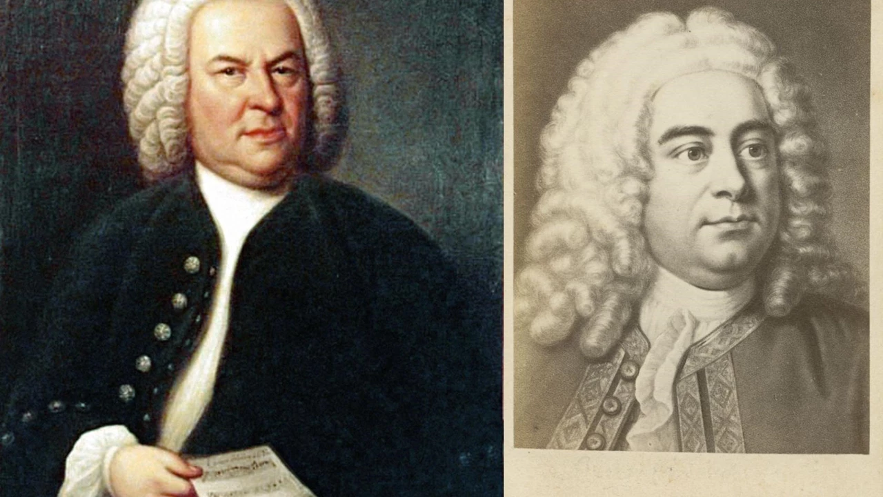 Bijschrift: Streek- en jaargenoten Bach (links) en Händel