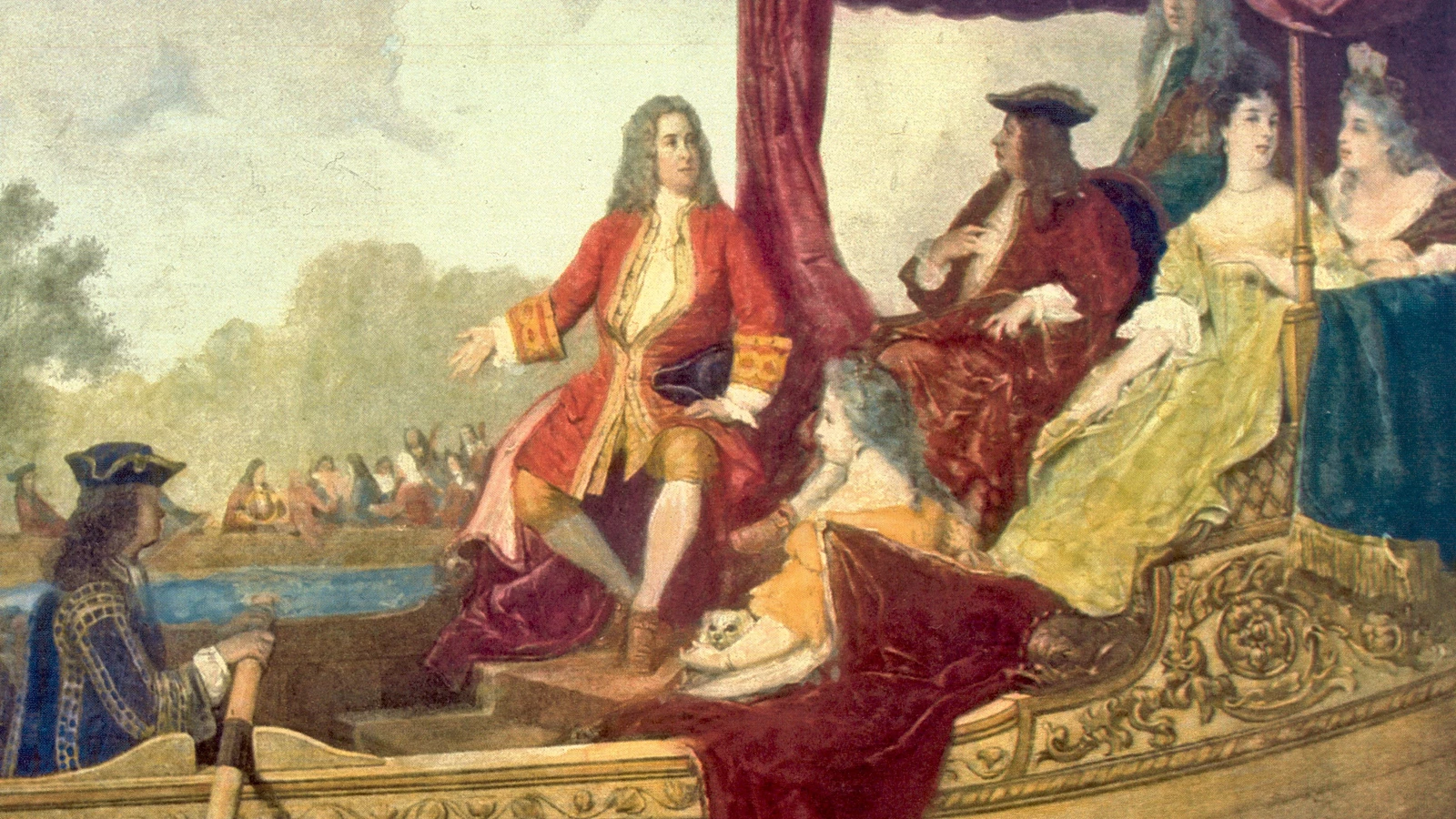 King George en Händel op de Theems. Schilderij van Edouard Hamman (1717)